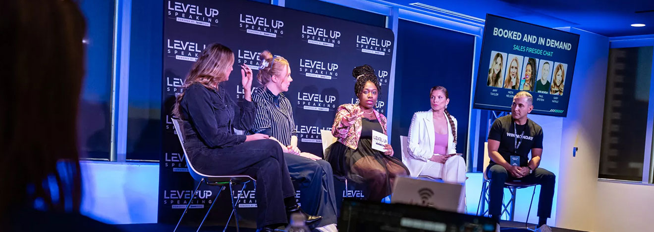 Every LevelUp seat includes full access to the two-day Speaking Intensive, hands-on coaching, and participation in a carefully curated room.